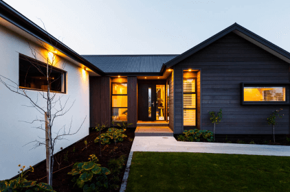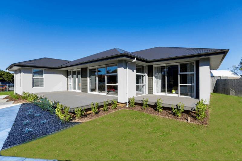 Our Show Home based off the Akaroa plan provides a stunning three-bedroom home with two living areas, full size study or 4th bedroom, spacious kitchen, and scullery. The unique design feature of this home is the generous outdoor living area, enclosed on three sides, which adds to the usable floor space of the home, whilst protecting the owners from the worst of the Manawatu winds.